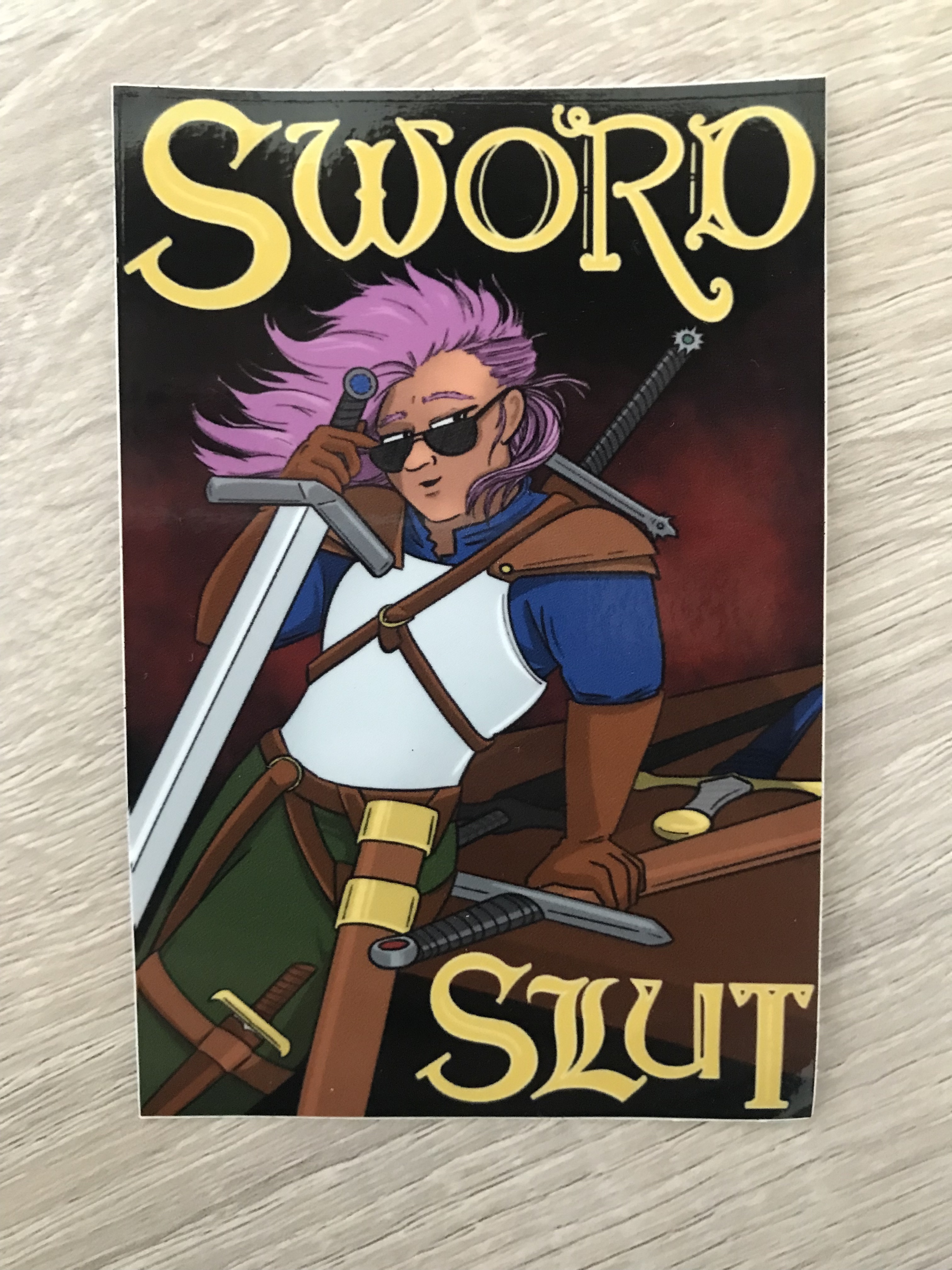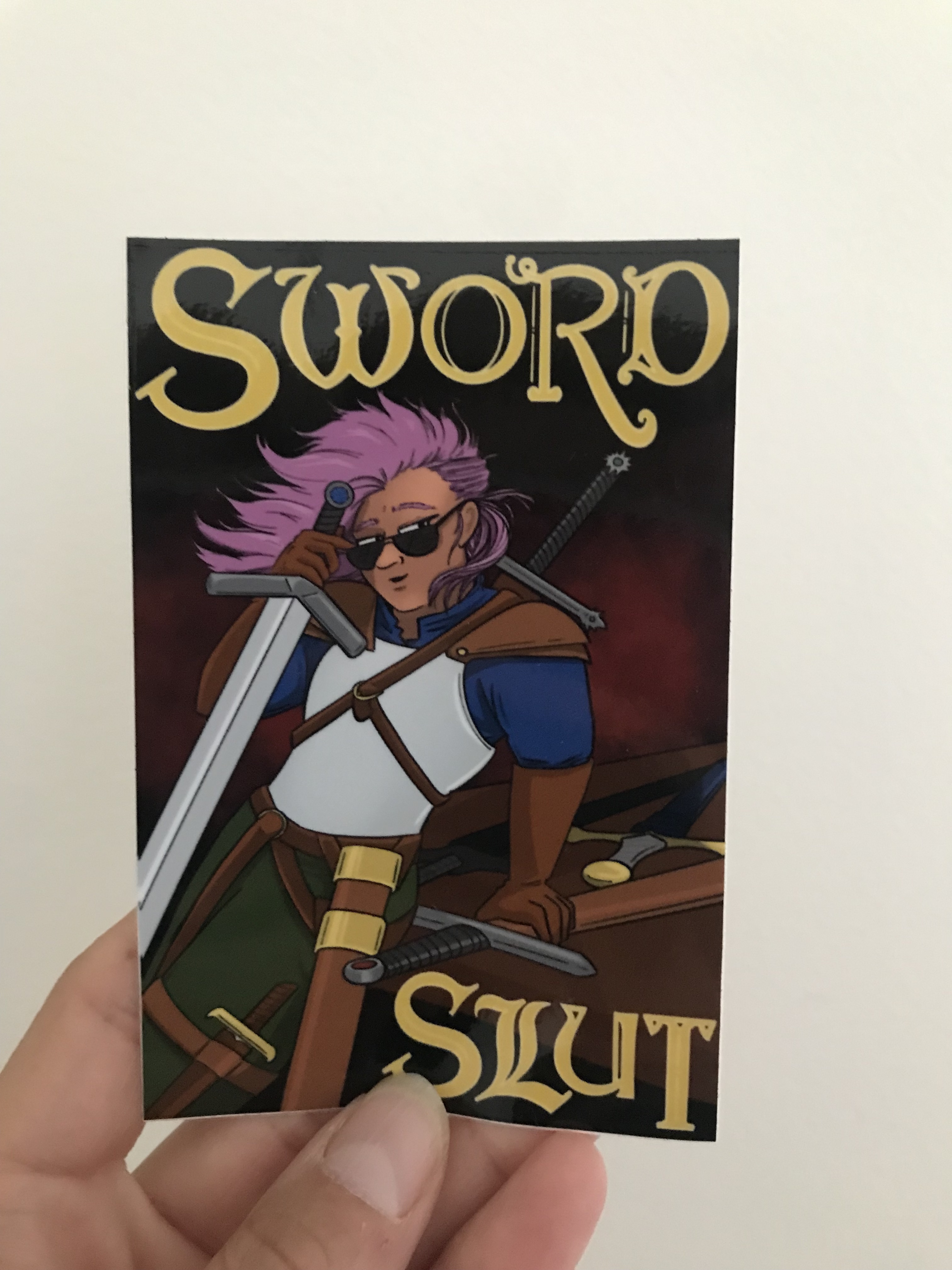 Do you have too many swords? Then this sticker is the one for you! Sized at 4.5" tall, 3" wide, this waterproof glossy sticker is perfect to slap on a scabbard of one of your many medieval blades.