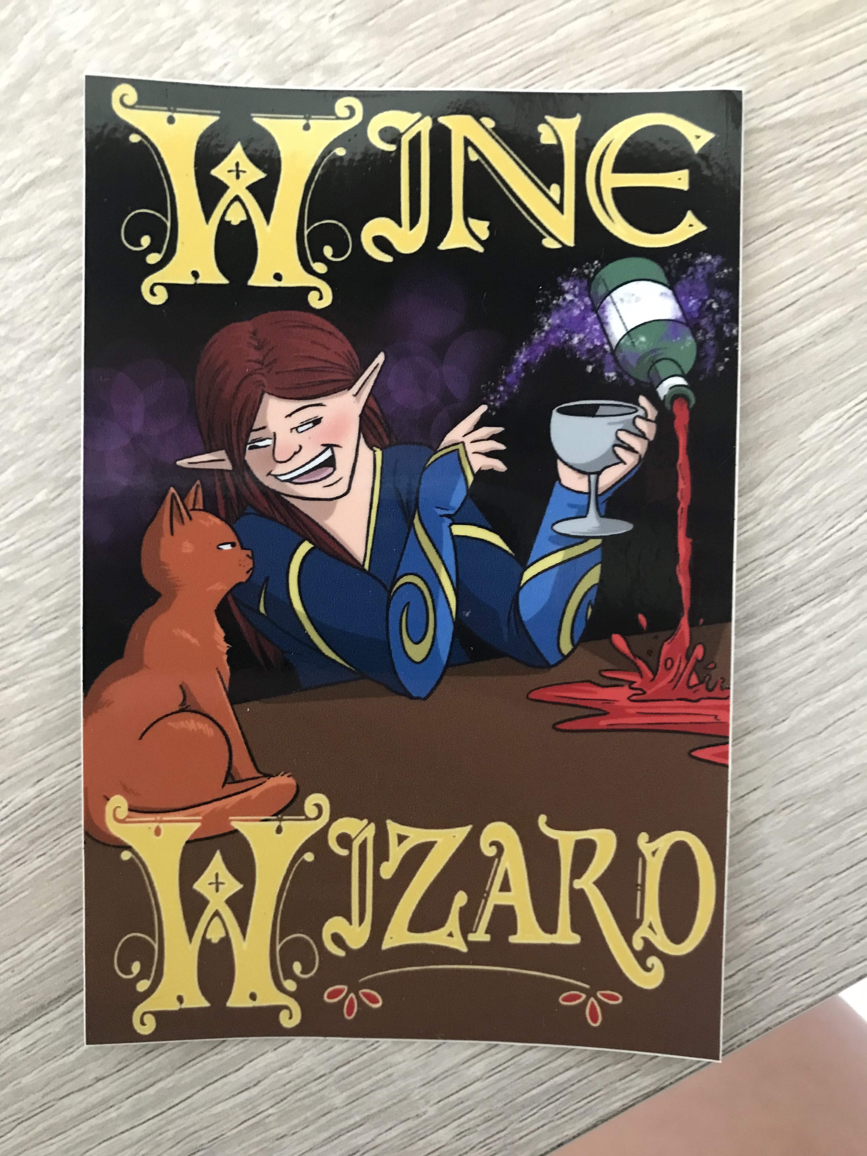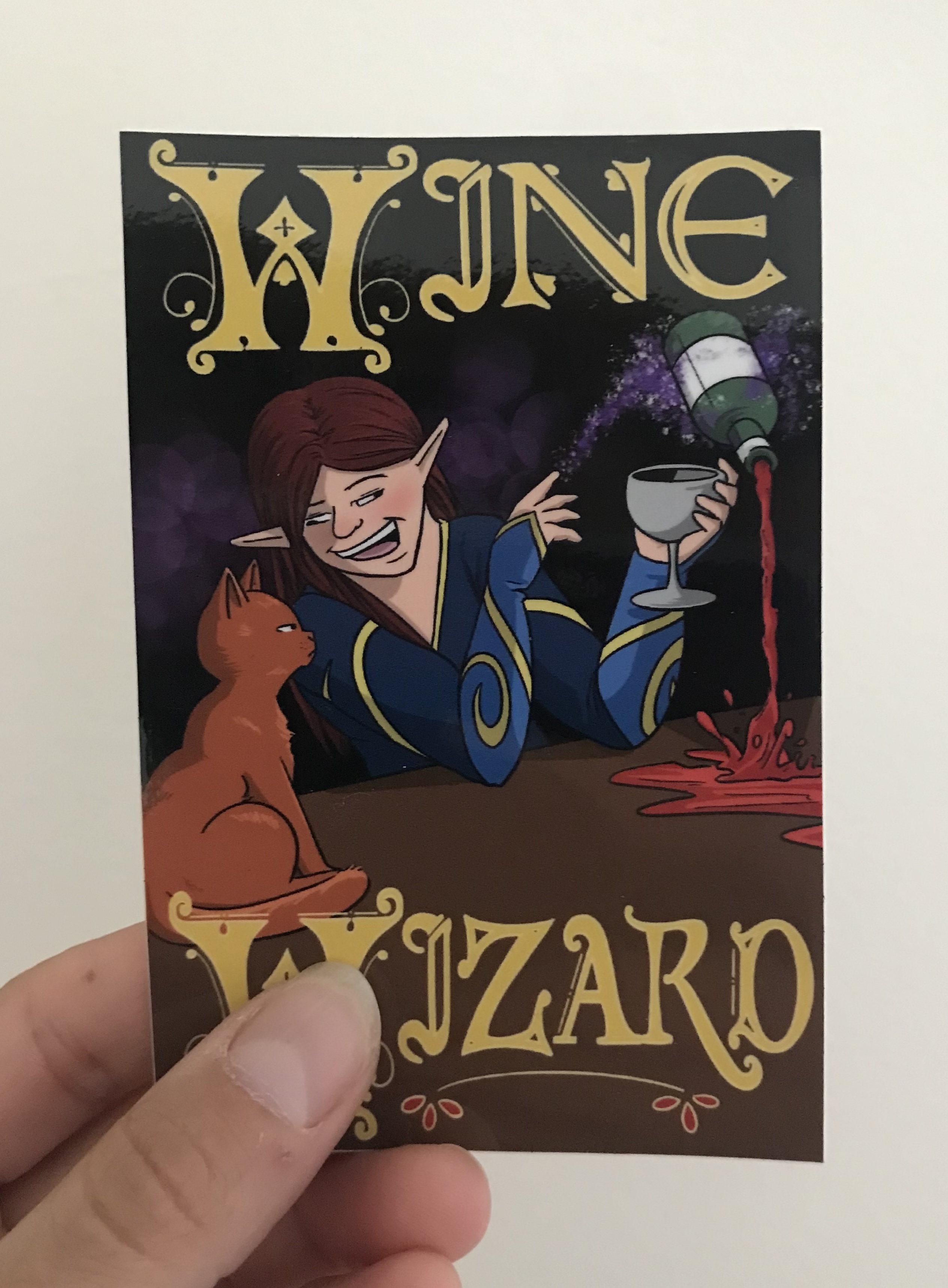 Are you a bit of a magical lush? Then this sticker is the one for you! Sized at 4.5" tall and 3" wide, this glossy sticker is both waterproof and wine-proof, ensuring no damage to your art as you continue to talk to your cat.